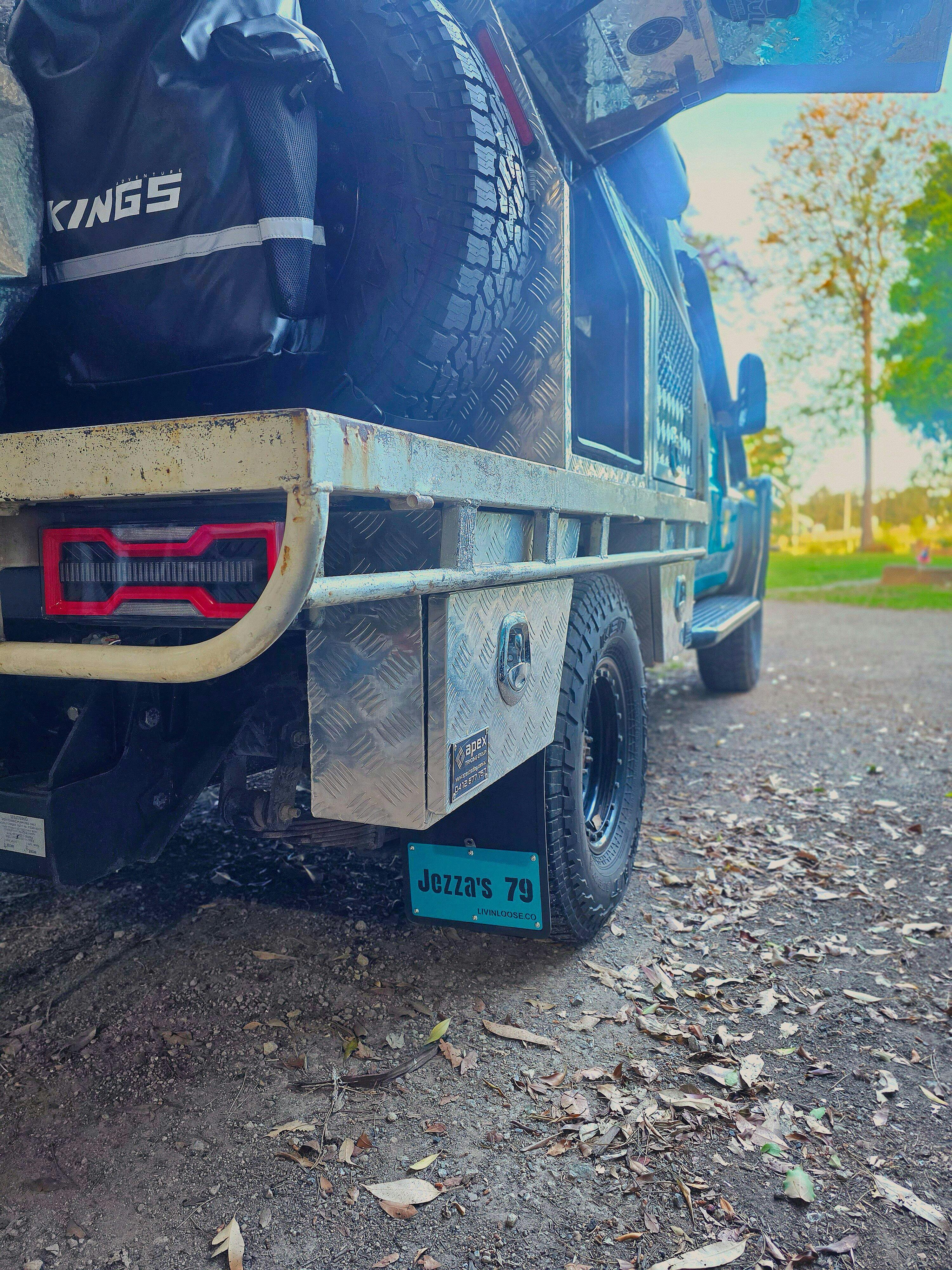 NOTE: If Mud-flaps are exposed to excessive salt water and other harmful conditions rust may appear around the edges of text and surface rust can appear. It is recommended to rinse them every afternoon.